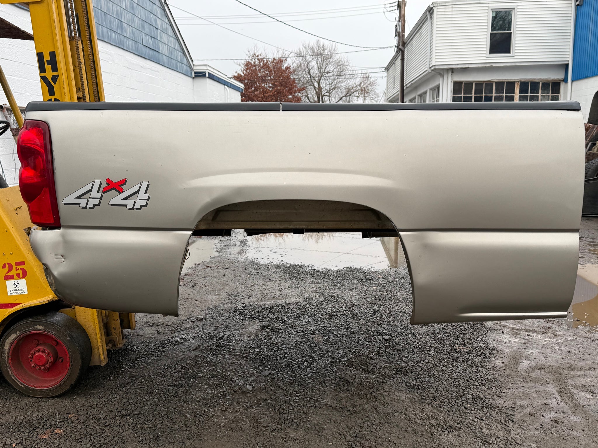 99-06 chevy/gmc southern rot free 6.6ft short bed. The bed was just hauled up from down south. The bed is rock solid. There is no rust or rot. The underside rails are nice and clean and no bubbles on the wheel arches like most in the north. It's a used truck bed so it has a dent on the passenger side by where the rear bumper goes. The price reflects I do have others for more $ and I have a white one cheaper. $2200 FIRM LOCATED IN WALLINGFORD CT. CASH OR CREDIT.