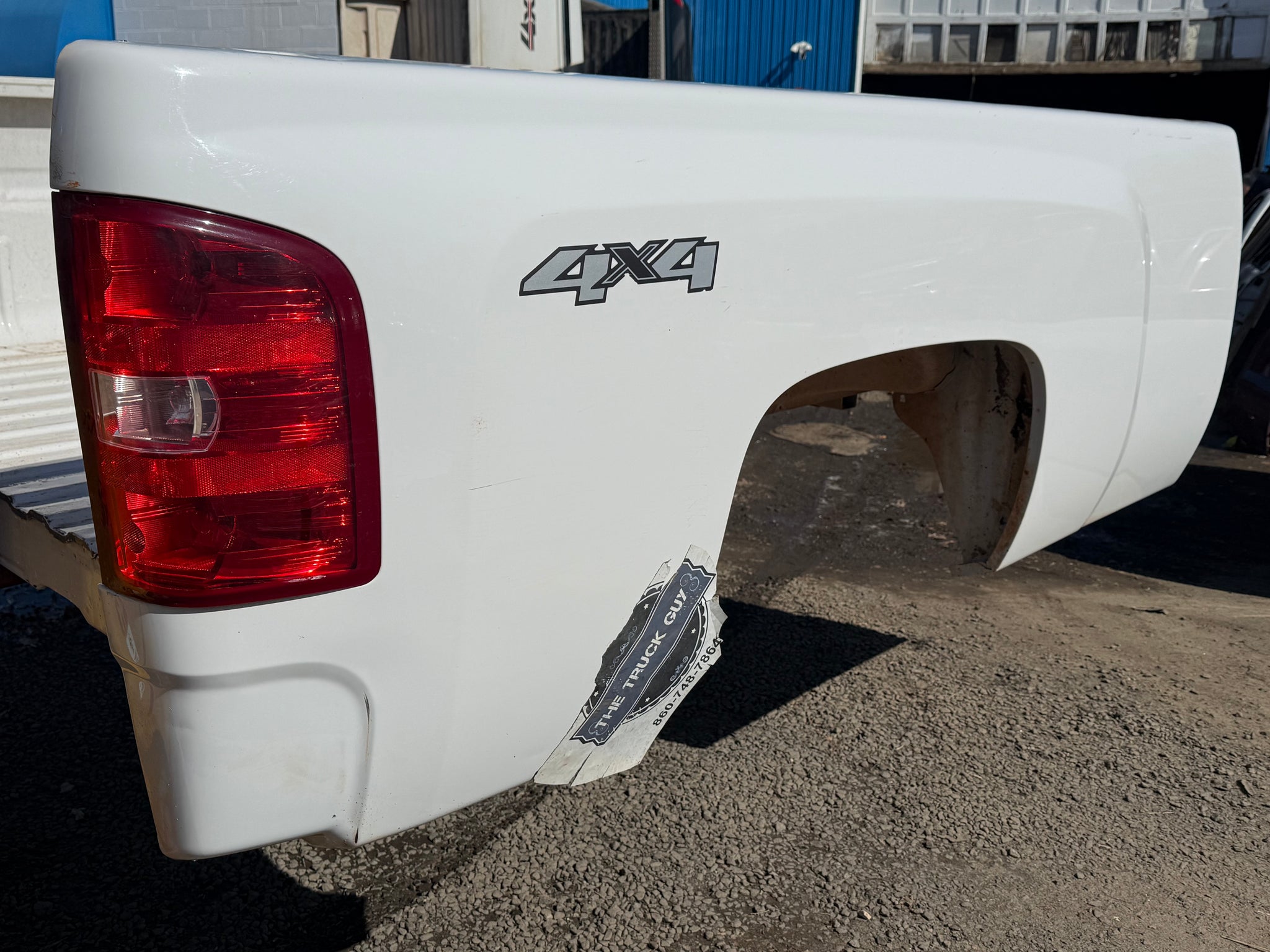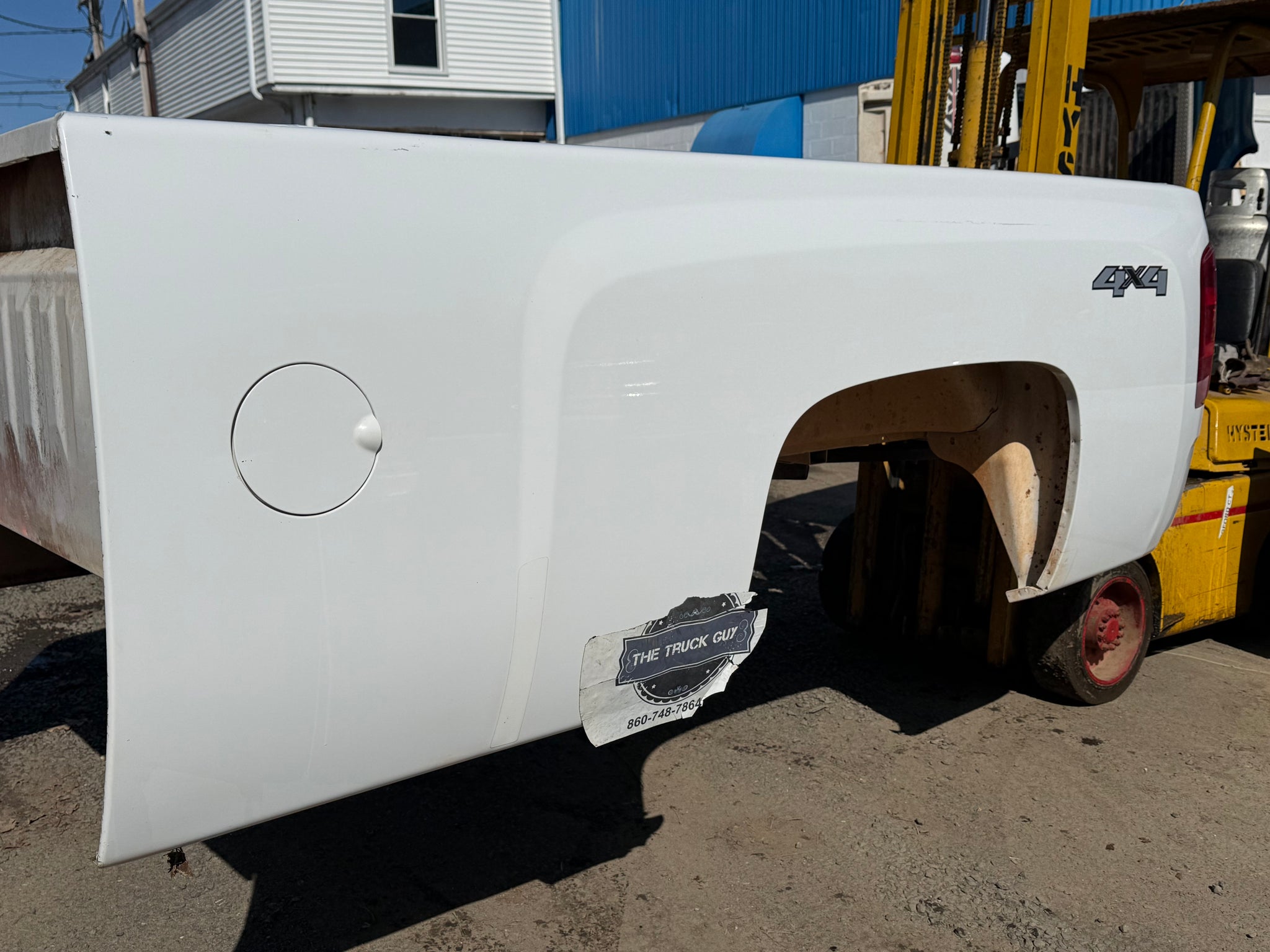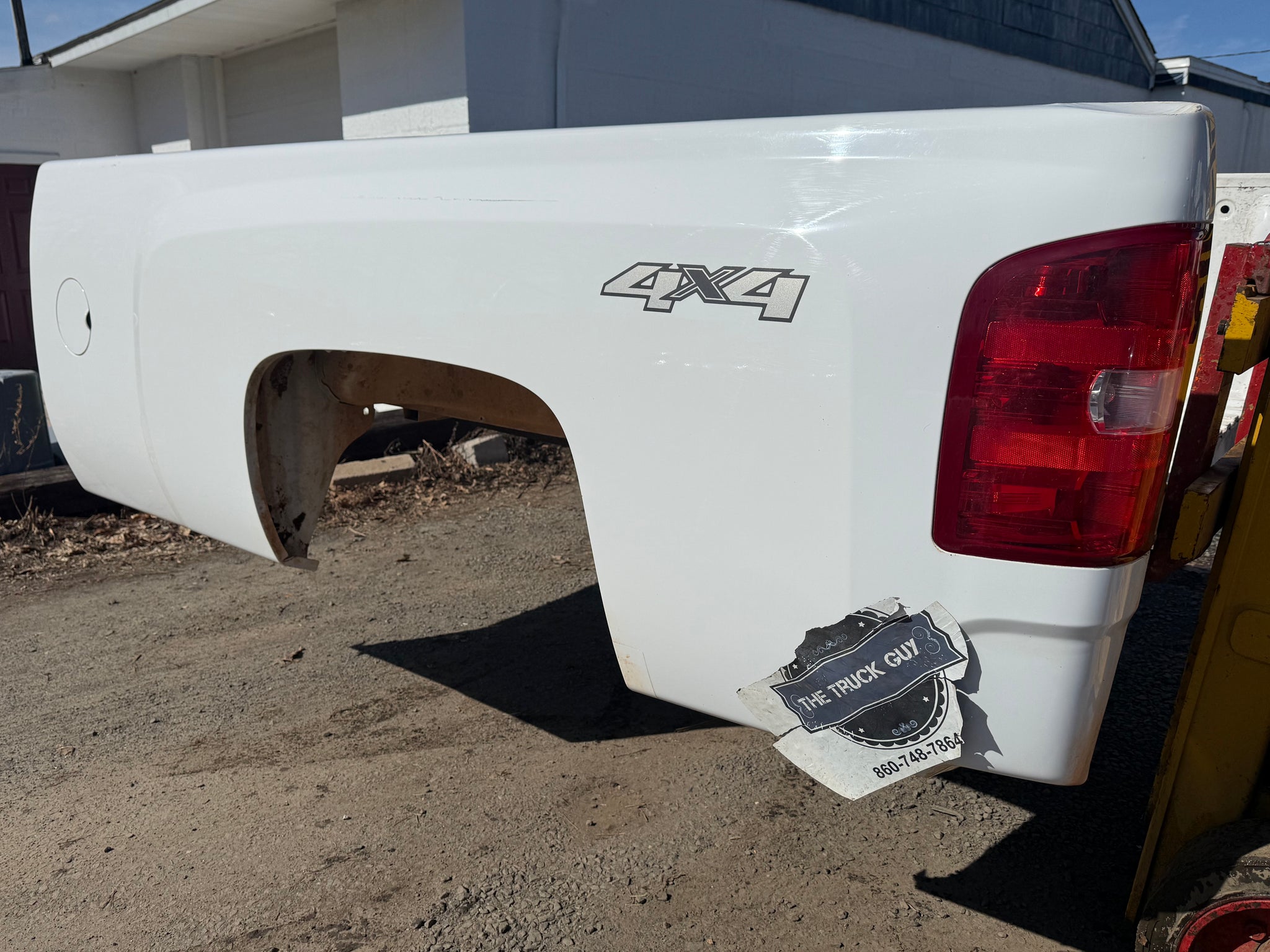 08-14 chevy silverado 8ft long bed. The bed was just hauled up from Texas. It is rust and rot free. The underside rails are rock solid and wheel arches are nice and clean no bubbles or blistering. It's in overall very nice shape for an 8ft bed. It would be hard to find one nicer. I do have an others a little cheaper. Its in OE white paint very nice used 8ft bed if your truck is white its a bolt on bed or if your looking to paint and not fix and patch rot its a very nice starting point. If you have not shopped around for an 08-14 8ft long bed ROT free in new england or anywhere please do they are very hard beds to find nice, and not hammered to death or rotted away. $4800 FIRIM. I have 3 others in white range from $3800-4800. LOCATED IN WALLINGFORD CT. CASH OR CREDIT.