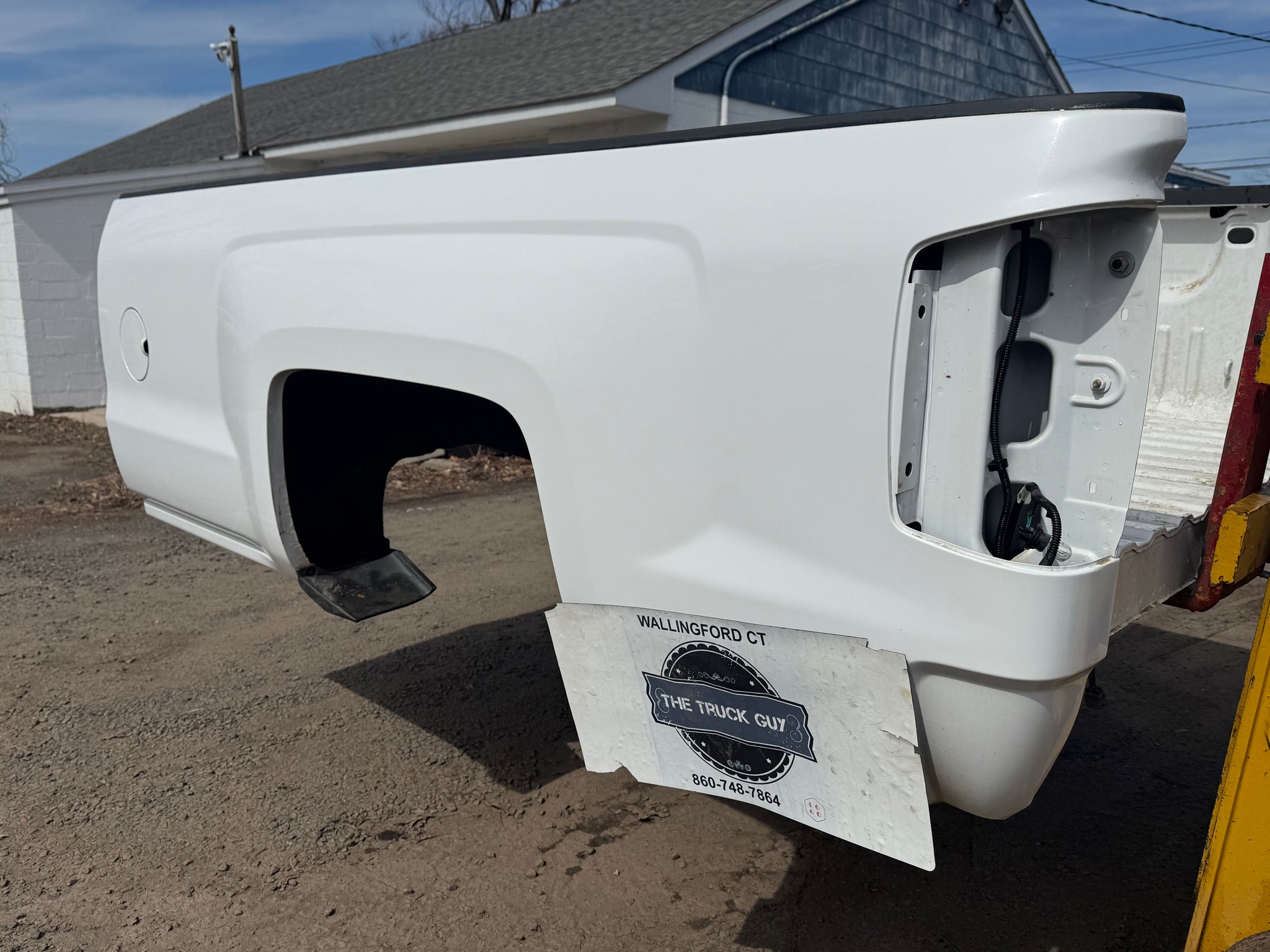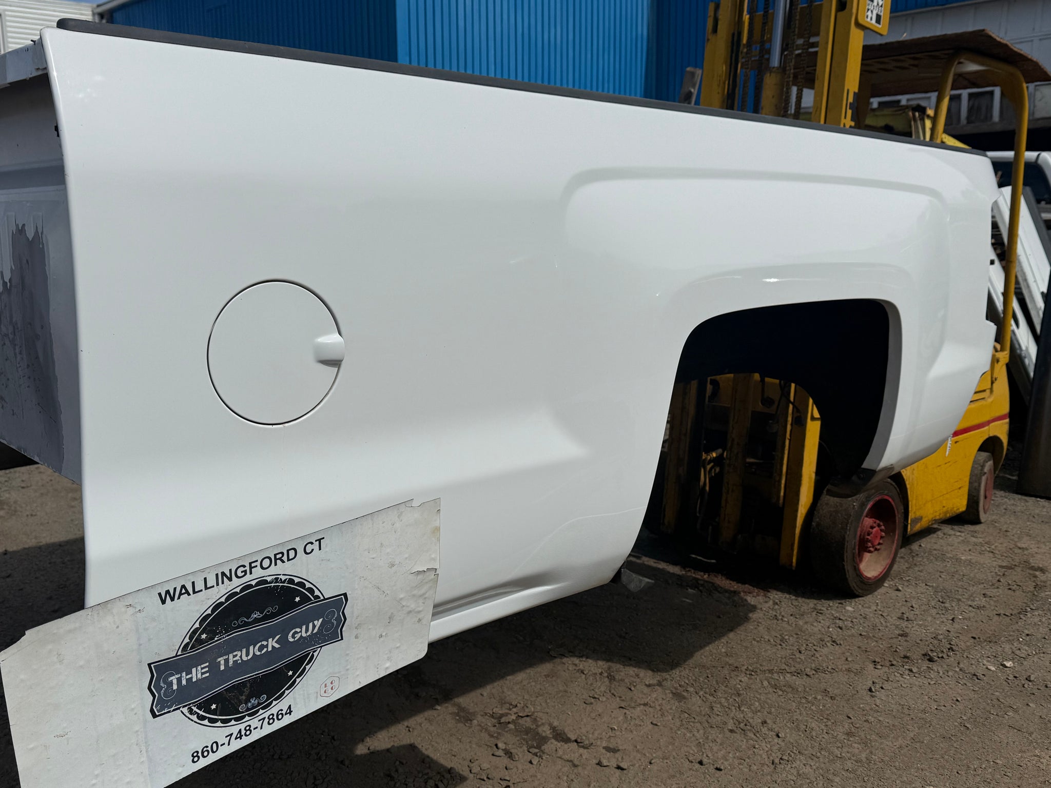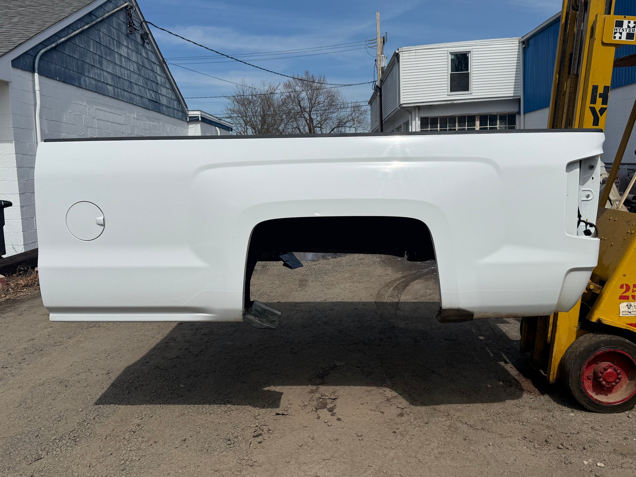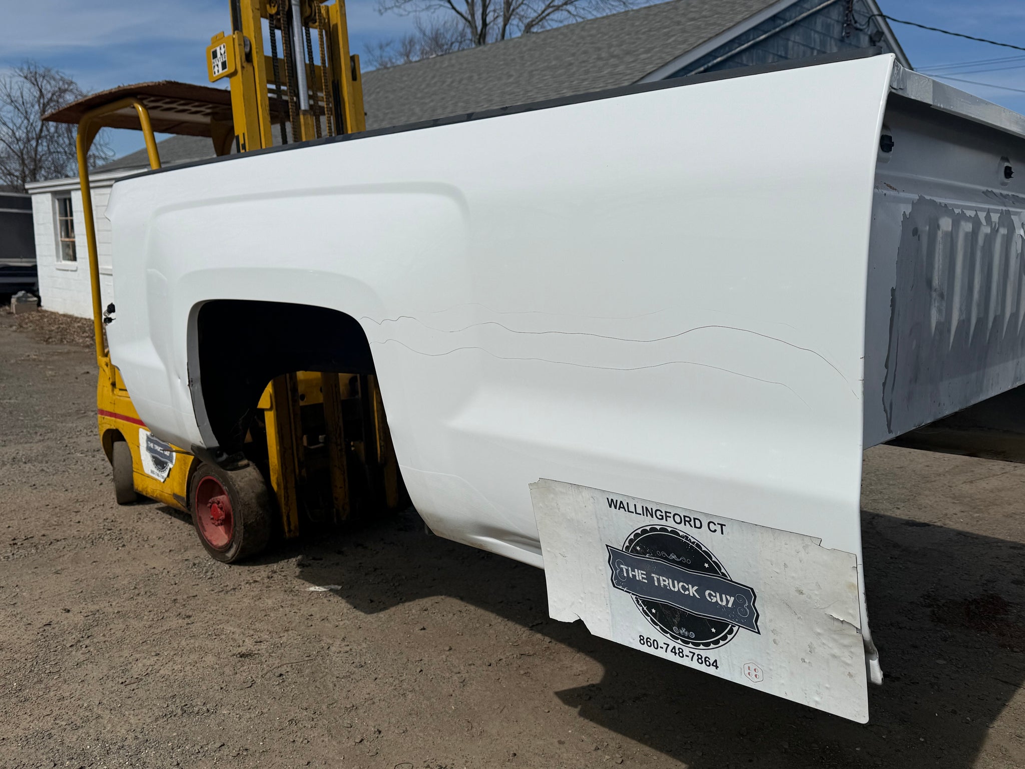 15-19 chevy silverado southern ROT FREE free 8ft long bed. This bed was hauled up from texas. It is like new it was stored since new. It has some shelf ware and a scratch from hauling otherwise it is like new. No rust no rot beautiful bed if your trucks white or if you dont want to do patches and rot repair. I do have a like new one for a little more as well in white. $3500 FIRM LOCATED IN WALLINGFORD CT. CASH OR CREDIT.