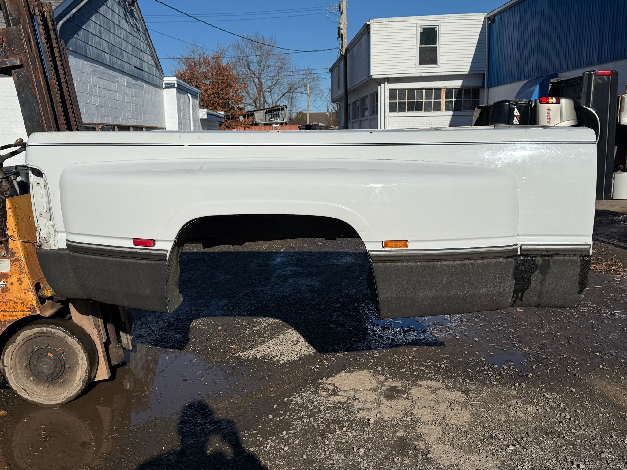 94-02 dodge ram 8ft dually bed. The bed was hauled up from NC. The flares are nice not cracked or shattered like most. It's been worked so inside floor is used. It was from NC but it got some surface rust and a few areas that need to be cleaned it. It is still a pretty decent bed if your floor is gone and flares are busted. They are getting impossible to come by they are always beat up or long gone after being flat bedded years ago. $2800 with gate. LOCATED IN WALLINGFORD CT. CASH OR CREDIT. I have a ton of 2nd gen dodge ram parts lets me know what you are looking for.